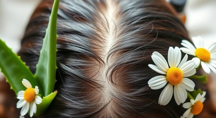 - Rumianek – pomaga w redukcji stanów zapalnych i działa kojąco na skórę głowy.